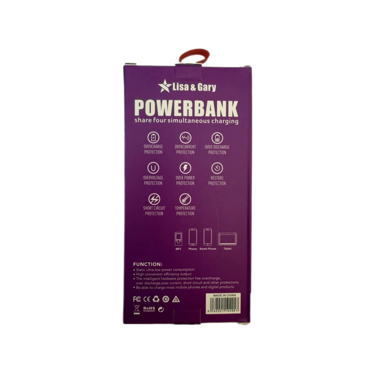 پاور بانک اصلی برند lisa&gary یک محصول عالی و با کیفیت که در سفر و هر جا دیگر شارژ وسایل الکتریکی شما را تامین می نماید این پاوربانک دارای چهار کابل همراه می باشدو همچنین میزان شارژ پاوربانک را به صورت چهار ال ای دی را نشان می دهد و دارای چراغ قوه میباشد