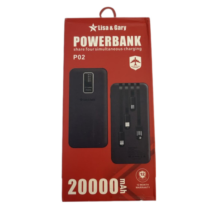 پاور بانک اصلی برند lisa&gary یک محصول عالی و با کیفیت که در سفر و هر جا دیگر شارژ وسایل الکتریکی شما را تامین می نماید این پاوربانک دارای چهار کابل همراه می باشدو همچنین میزان شارژ پاوربانک را به صورت چهار ال ای دی را نشان می دهد و دارای چراغ قوه میباشد