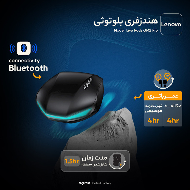 هندزفری بلوتوثی لنوو مدل Live Pods GM2 Pro