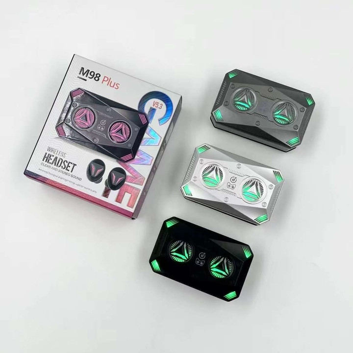 اگر به دنبال هدفون بیسیمی هستید که هم کیفیت صدای خوبی داشته باشد و هم مخصوص بازی باشد و بتوان با آن مکالمه راحتی داشت ما به شما هدفون بیسیم مدل M98 PLUS را معرفی میکنیم این هدفون علاوه بر موارد ذکر شده بواسطه داشتن باتری قدرتمند و همراه داشتن کابل خاصیت پاوربانک هم دارد و با آن میتوانید گوشی خود را شارژ کنید گوشیهای این محصول به خوبی در گوش جای میگیرند و به راحتی میتوان با آن به ورزش نیز پرداخت. ظاهر اسپرت گونه آن باز شدن درب و چراغ RGB زیباییهای این هدفون را بیشتر کرده است. این مدل در بین رقبای خود جزو دسته اقتصادی و پر طرفدار قرار میگیرد.