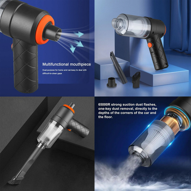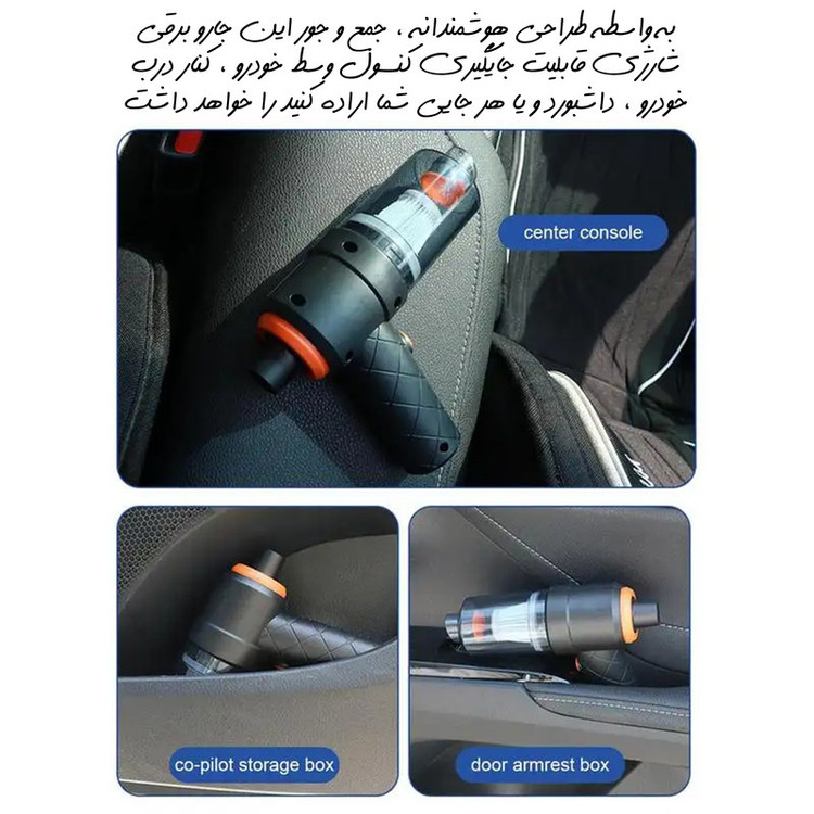 اگر به دنبال یک جارو شارژی برای خودرو و ماشین تان هستید این پیشنهاد عالی را به شما می دهیم، محصولی بی نظیر و با قدرت فوق العاده تولید کشور چین که دارای مخزن با گنجایش عالی و مکش بالا برای تمیز کردن سریع داخل ماشین کاربرد دارد.این جارو دو قابلیت مکندگی و دمندگی دارد این جارو شارژی ماشین قابل حمل دارای دو سری می باشد که به قسمت مکنده متصل می شود که یکی برای قسمت هایی مانند بین صندلی که دسترسی به آن سخت است طراحی شده و سری دیگر دارای فرچه برای گردگیری از موکت زیر پا و بیرون کشیدن خاک و مو طراحی شده است که بسیار کاربردی می باشد. برای شارژ کردن این دستگاه می توانید سری USB را به شارژر موبایل یا شارژر فندکی ماشین وصل کنید و سر دیگر آن را به دستگاه متصل کنید تا شارژ کامل شود و از آن تا ساعت ها استفاده کنید. جاروبرقی چند منظوره – این جاروبرقی قابل حمل نه تنها عملکرد جاروبرقی را دارد، بلکه عملکرد گرد و غبار و دمنده هوا را نیز دارد. هنگام استفاده از عملکرد خلاء، لوازم جانبی مختلفی برای پاسخگویی به نیازهای سناریوهای مختلف وجود دارد. با قرار دادن نازل هوا در پشت جاروبرقی، می توان آن را به بادگیر و دمنده برای تمام نظافت و نیازهای روزانه شما تبدیل کرد. جاروبرقی کارآمد – طراحی بی سیم و قدرت مکش 6000 پاسکال به شما این امکان را می دهد که گرد و غبار، موهای حیوانات خانگی، شن و ماسه، باقیمانده غذا، مقدار کمی مایع و چیزهای مختلف پنهان شده در کوسن ها یا مبل ها را در هر زمان و هر مکان به راحتی تمیز کنید. باتری لیتیومی داخلی 1200 میلی آمپر می تواند نیاز شما را پاسخگو باشد. لوازم جانبی کاربردی فوق العاده – علاوه بر لوازم جانبی مختلف نازل هوا، این جاروبرقی اتومبیل علاوه بر این شامل فیلتر ضد گرد و غبار و یک میله طولی برای دسترسی به قسمت های تنگ بین صندلی ها می باشد. بی سیم و قابل حمل – این جارو شارژی دستی کمتر از 300 گرم وزن دارد. طراحی بی سیم به شما امکان می دهد بدون محدودیت از آن استفاده کنید. زندگی را راحت تر کنید جاروبرقی سایز کوچک برای انواع سناریوها مانند خانه، محل کار و ماشین مناسب است. هنگام استفاده، نویز کمتر از 70 دسی بل است که باعث ایجاد مشکل در صدا نمی شود.