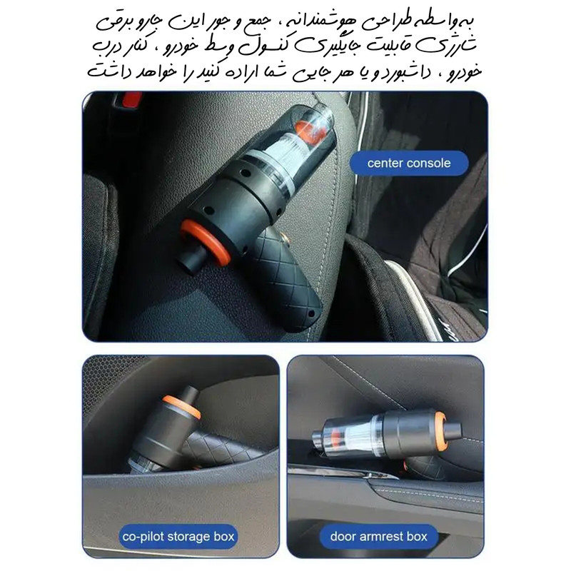 اگر به دنبال یک جارو شارژی برای خودرو و ماشین تان هستید این پیشنهاد عالی را به شما می دهیم، محصولی بی نظیر و با قدرت فوق العاده تولید کشور چین که دارای مخزن با گنجایش عالی و مکش بالا برای تمیز کردن سریع داخل ماشین کاربرد دارد.این جارو دو قابلیت مکندگی و دمندگی دارد این جارو شارژی ماشین قابل حمل دارای دو سری می باشد که به قسمت مکنده متصل می شود که یکی برای قسمت هایی مانند بین صندلی که دسترسی به آن سخت است طراحی شده و سری دیگر دارای فرچه برای گردگیری از موکت زیر پا و بیرون کشیدن خاک و مو طراحی شده است که بسیار کاربردی می باشد. برای شارژ کردن این دستگاه می توانید سری USB را به شارژر موبایل یا شارژر فندکی ماشین وصل کنید و سر دیگر آن را به دستگاه متصل کنید تا شارژ کامل شود و از آن تا ساعت ها استفاده کنید. جاروبرقی چند منظوره – این جاروبرقی قابل حمل نه تنها عملکرد جاروبرقی را دارد، بلکه عملکرد گرد و غبار و دمنده هوا را نیز دارد. هنگام استفاده از عملکرد خلاء، لوازم جانبی مختلفی برای پاسخگویی به نیازهای سناریوهای مختلف وجود دارد. با قرار دادن نازل هوا در پشت جاروبرقی، می توان آن را به بادگیر و دمنده برای تمام نظافت و نیازهای روزانه شما تبدیل کرد. جاروبرقی کارآمد – طراحی بی سیم و قدرت مکش 6000 پاسکال به شما این امکان را می دهد که گرد و غبار، موهای حیوانات خانگی، شن و ماسه، باقیمانده غذا، مقدار کمی مایع و چیزهای مختلف پنهان شده در کوسن ها یا مبل ها را در هر زمان و هر مکان به راحتی تمیز کنید. باتری لیتیومی داخلی 1200 میلی آمپر می تواند نیاز شما را پاسخگو باشد. لوازم جانبی کاربردی فوق العاده – علاوه بر لوازم جانبی مختلف نازل هوا، این جاروبرقی اتومبیل علاوه بر این شامل فیلتر ضد گرد و غبار و یک میله طولی برای دسترسی به قسمت های تنگ بین صندلی ها می باشد. بی سیم و قابل حمل – این جارو شارژی دستی کمتر از 300 گرم وزن دارد. طراحی بی سیم به شما امکان می دهد بدون محدودیت از آن استفاده کنید. زندگی را راحت تر کنید جاروبرقی سایز کوچک برای انواع سناریوها مانند خانه، محل کار و ماشین مناسب است. هنگام استفاده، نویز کمتر از 70 دسی بل است که باعث ایجاد مشکل در صدا نمی شود.